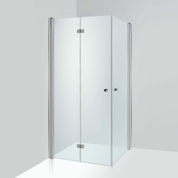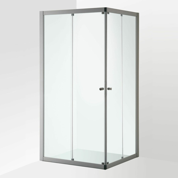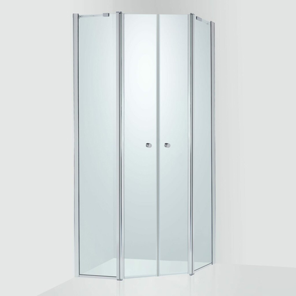 Duschhörna med två skjutdörrar och två fasta partier