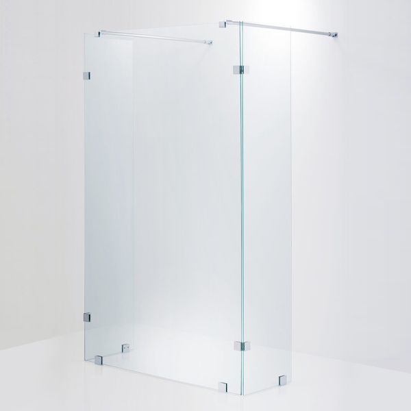 Dubbeldörr i 6 mm härdat säkerhetsglas.