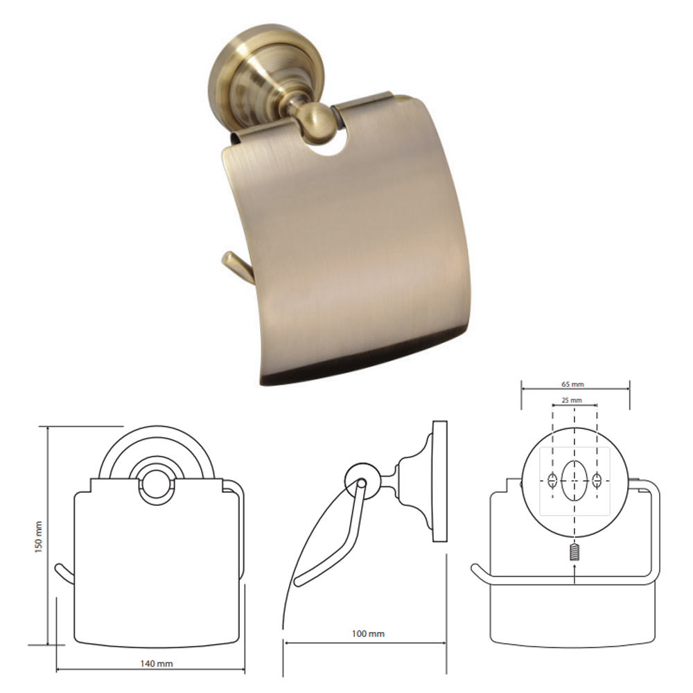 Toalettpappershållare Duschbyggarna CLASSIC BRONS med Lock